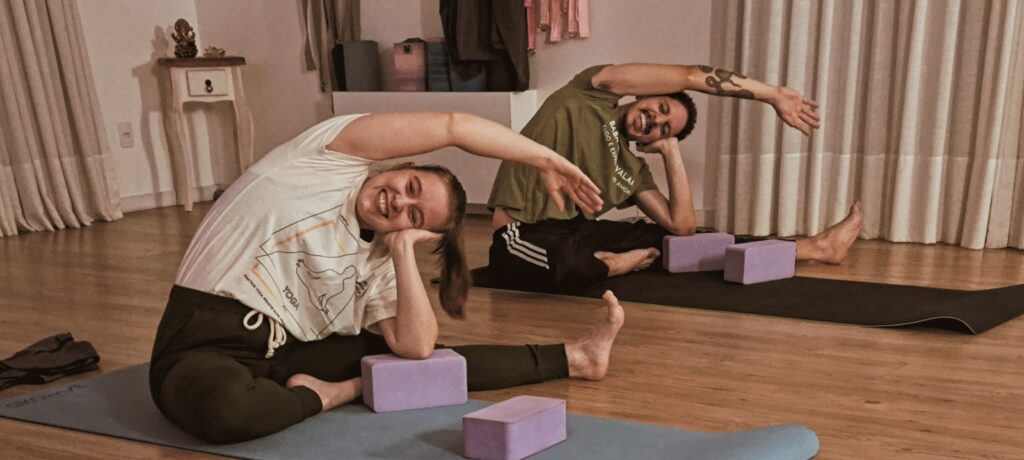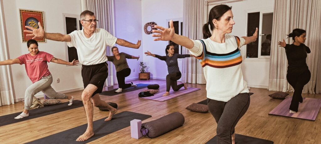 Hatha Yoga é uma linha de yoga em que se trabalha mais a permanência nas posturas (ásanas). Trabalhamos muito a respiração, a presença da mente no aqui e no agora. Claro que também terá uma certa fluidez nas aulas.